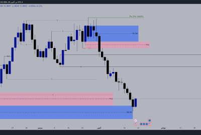 في حال تم الصعود ومسح السيولة او الانطلاق من السعر الحالي للاعلى رح يكون صعود مؤقت للوصول للاوردر البيعي ومن ثم هبوط قوي