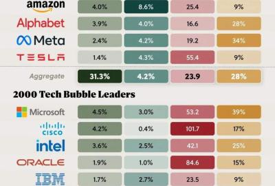 من حيث القيمة السوقية، تمثل Mag 7 أكثر من 30% من الولايات المتحدة. وهذا أعلى بكثير من نسبة 19٪ التي كانت تمتلكها أسهم التكنولوجيا السبعة الرائدة في العقد الأول من القرن الحادي والعشرين.