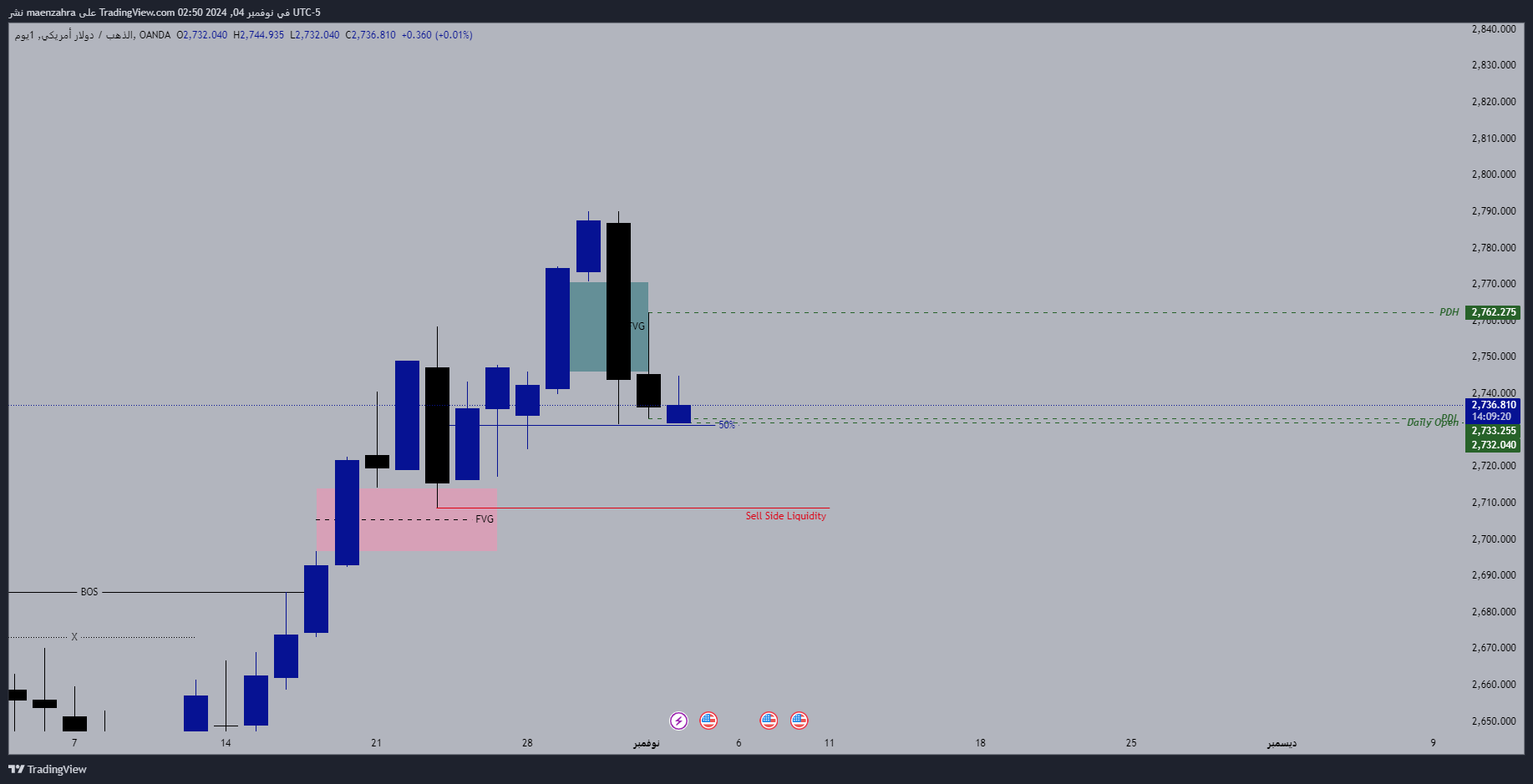 لنقول انو الدهب سلبي ع الفريم اليومي نحنا بحاجة كسر قوي وثبات اسفل مستوى 2708